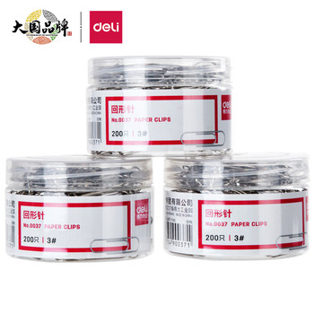 • 得力(deli)29mm镀镍回形针 3#金属曲别针 200枚/筒 3筒装 办公用品 33089