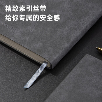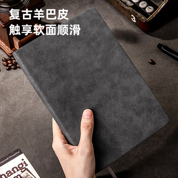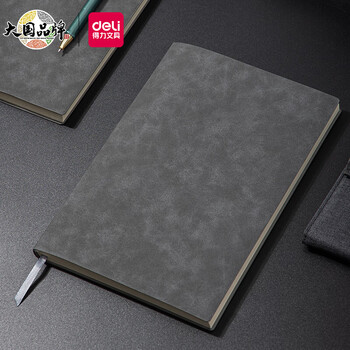 • 得力(deli)16K/120张羊巴皮笔记本子 加厚软面皮面本记事本日记本办公用品 灰色3345