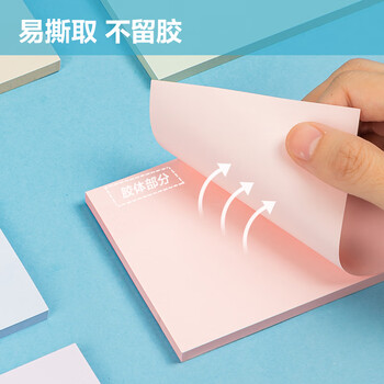 • 得力(deli)300张4色浅调系列淡彩简约便利贴 76*102mm便签本/记事贴/ 自粘留言本 办公用品 BT134
