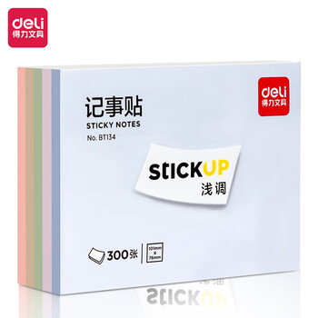 得力(deli)300张4色浅调系列淡彩简约便利贴 76*102mm便签本/记事贴/ 自粘留言本 办公用品 BT134