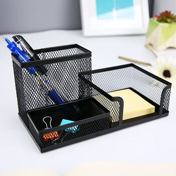 • 晨光(M&G)金属时尚网格方形笔筒学生办公用品通用型桌面收纳盒黑色ABT98405