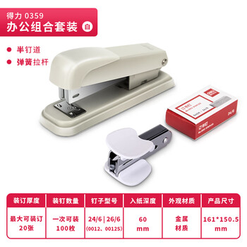 • 得力(deli)订书机三件组合套装(订书机 订书钉 起钉器) 订书器 白色0359