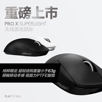 • 罗技(G)PRO X SUPERLIGHT无线游戏鼠标 GPW2二代 轻量化63g电竞鼠标 黑色