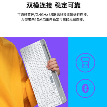 罗技(Logitech) K580 无线蓝牙键盘驱动套装 办公键盘便携超薄键盘笔记本键盘轻薄平板键盘 K580白