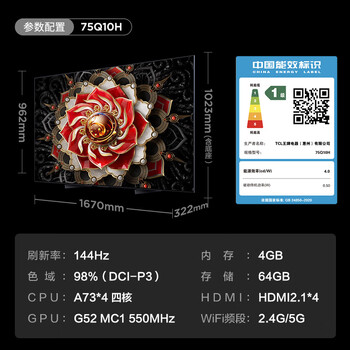 • TCL电视 75Q10H 75英寸 Mini LED 液晶智能平板电视机