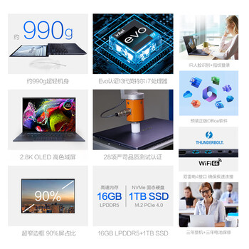 华硕(ASUS)破晓Air (i7-1355U 16G 1TSSD固态 2.8K OLED屏)配电脑包+鼠标
