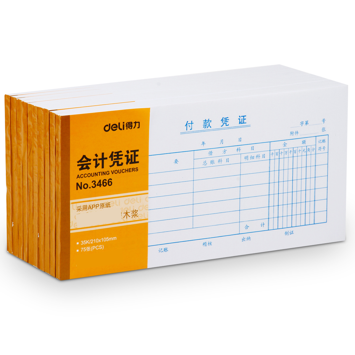 得力 3466 付款凭证会计凭证/凭单财务单据/票据 35k(210x105m (单位:本) 白色