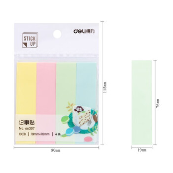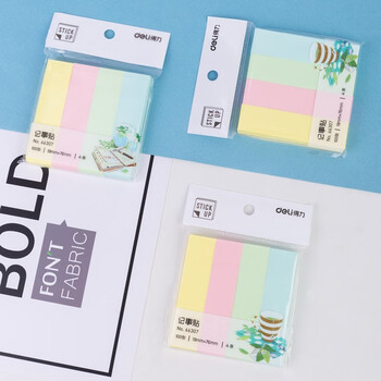 得力(deli) 66307便利贴便签纸记事贴彩色百事贴留言条分条标签4色400张 /1包装