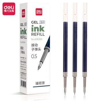 得力(deli)【顺滑之星】臻顺滑中性笔替芯0.5mm按动子弹头 S01/S08/1008/K35适用 墨蓝20支/盒6906H