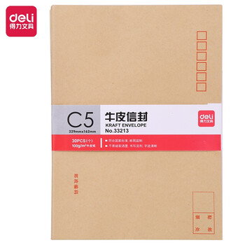 • 得力(deli)7号牛皮纸信封 邮局标准信封229*162mm33213
