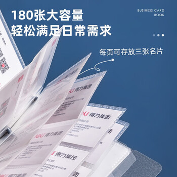 • 得力(deli)5778名片册活页带捆绳大容量活页名片册办公商务名片夹-180片深蓝色
