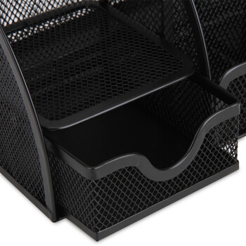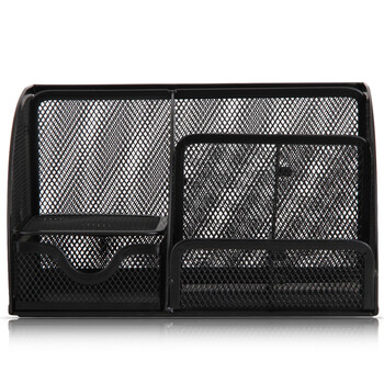• 得力(deli)创意金属网纹办公笔筒 多功能七格桌面收纳摆件 办公用品 黑色9200