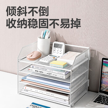 • 得力可折叠金属文件栏四层 白色PB116