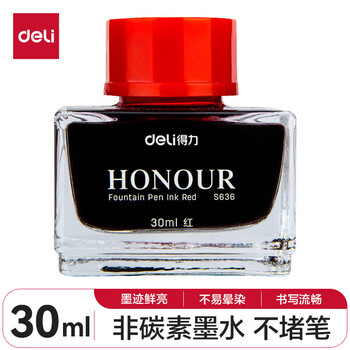 • 得力(deli)钢笔墨水30ml红色瓶装 S636