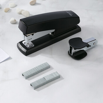 得力(deli)12#办公订书机3件套(订书器 订书钉 起钉器) 办公用品 黑色0354