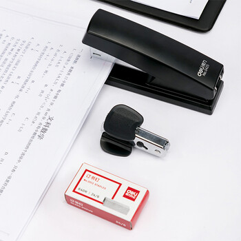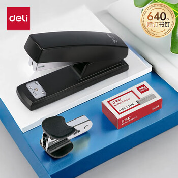 • 得力(deli)12#办公订书机3件套(订书器 订书钉 起钉器) 办公用品 黑色0354