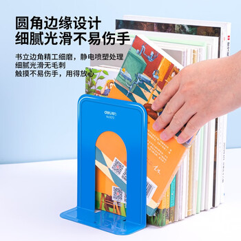 • 得力(deli)7英寸(高17cm)金属铁桌面书立2片/ 办公学习用品 蓝色 9272