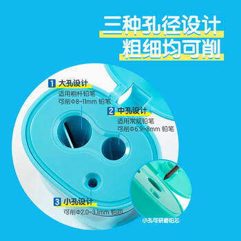 • 得力(deli)VB203单支装学生三孔密封门卷笔刀大口径转笔刀铅芯研磨器粗杆三角削笔刀橙