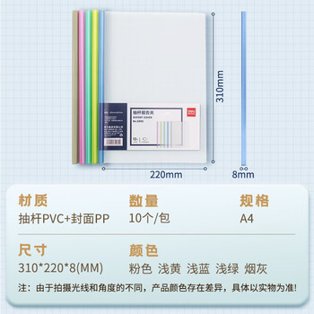 • 得力(deli)10只A4水滴形抽杆夹拉杆夹文件夹 8mm 彩色透明资料夹考试产检收纳 5色装 5850