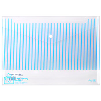 • 得力(deli)10只A4加文件袋 条纹透明按扣资料袋会议袋 文件保护 票据试卷收纳袋 5630