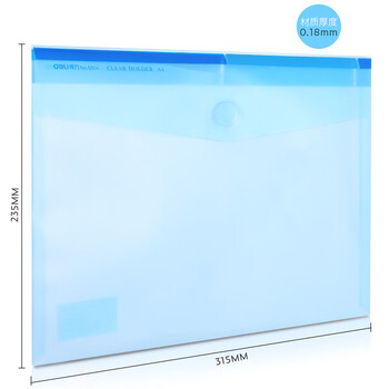 • 得力(deli)12只A4加厚透明文件袋 粘扣资料袋 试卷收纳袋 学科分类 防水 学习用品 蓝色5504