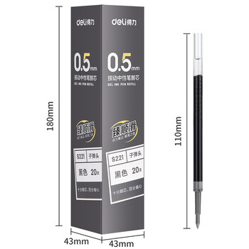 • 得力(deli)臻顺滑0.5mm中性笔S08按动子弹头碳素黑 笔芯黑色20支 s221