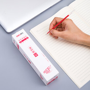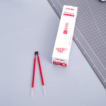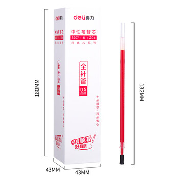 • 得力(deli)拔帽中性笔替芯 0.5mm全针管学生办公签字笔水笔笔芯 红色20支/盒 S207