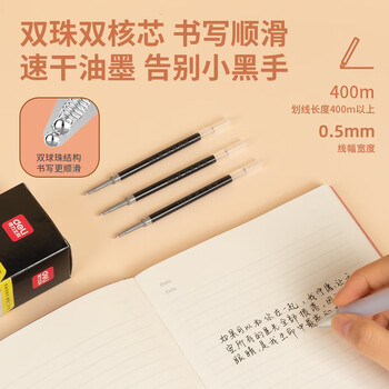 • 得力(deli)双核芯0.5mm速干ST头按动中性笔替换芯 办公学生水笔签字笔替芯 黑色20支/盒SE152