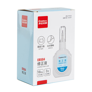 • 齐心(Comix) 18ml 3支装 修正液涂改液3支装 快干环保改正液/涂改液/修改液 办公学生用品EB504 白