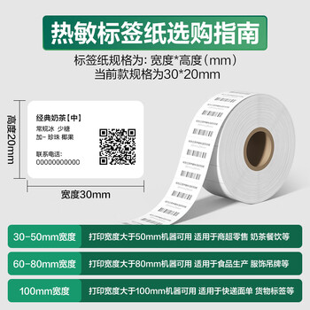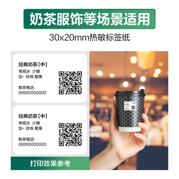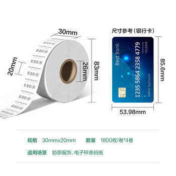 得力(deli)珊瑚海30*20mm 1800张*4卷 三防热敏标签打印纸 不干胶打印纸12005
