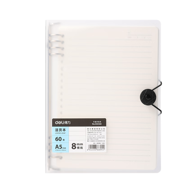 • 得力(deli)A5飞盘扣活页本透明横线本60张中学生考研笔记本本子HA560