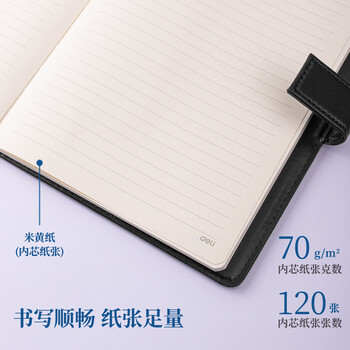 • 得力(deli) 16K/120张商务经典皮面本带按扣软面贴芯会议记事本日记本笔记本子7941