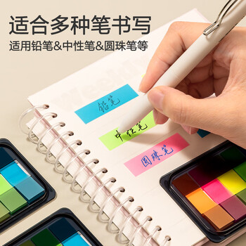 • 得力(deli)100张5色荧光膜指示标签贴 44*12mm抽取式便利贴便签条记事贴9060