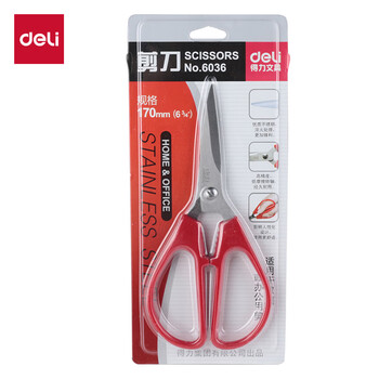 • 得力(deli)170mm中号家用生活厨房剪刀 不锈钢剪刀 手工缝纫办公剪子 红 6036