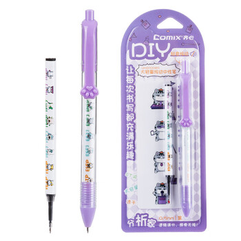 • 齐心(COMIX)顺滑大容量按动中性笔盲盒笔签字笔水笔 0.5mmST头 黑色 1笔+1芯+贴纸 WHGP0089