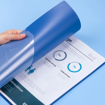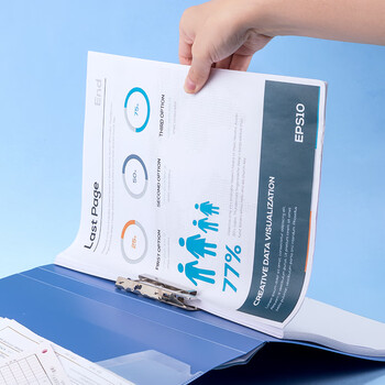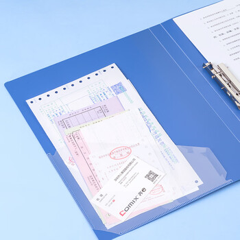 • 齐心 A4文件夹办公用品金属单强力夹插页袋文件夹大容量试卷资料夹诗朗诵夹板GRS环保认证 AB600A 海蓝