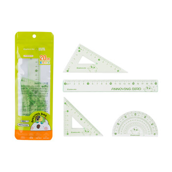 • 齐心(Comix)神烦鸟尺子四件套 学习绘图(直尺20cm+三角尺*2+量角器)考试专用 六一儿童节礼物YFBZ0074