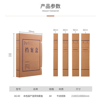 • 齐心(COMIX)AG-60 本色国产混浆档案盒 文件盒 资料盒 A4/60mm 10个/套 牛皮纸 218×310×60mm