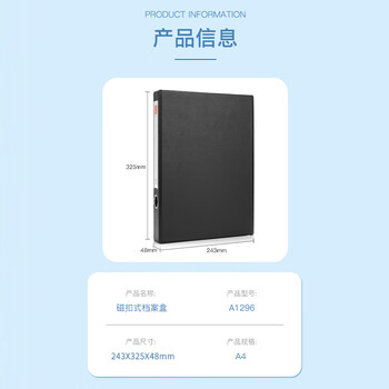 • 齐心(COMIX)A1296 磁扣式PVC档案盒 文件盒 资料盒 A4 黑 243×325×48mm