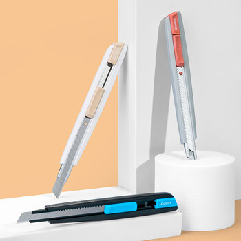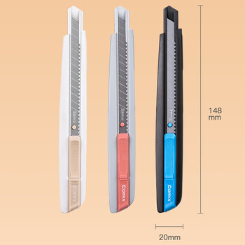 • 齐心(COMIX)小号塑胶外壳9mm美工刀裁纸刀壁纸刀 办公家用快递小刀 办公用品 尾部自带折刀器 深灰B2864
